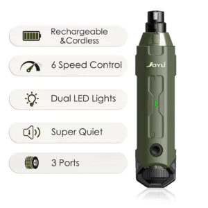 Newest enhanced power & 6 precisely controlled speeds: 7000RPM to 12000 RPM power makes joyu dog nail grinder one of the most powerful grinders on the market. It is also the safe power to grind at home. Multiple speeds and ample power meet small, medium, and large pets’ nail trimming needs.