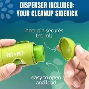 When you need to dispense a new roll, simply twist off the cap and insert a new one. Once you’re loaded, inner pins secure the roll and do not fall out. Also able to free your hands from poop bags by securing your used bag in the convenient hook between the loop and holder.