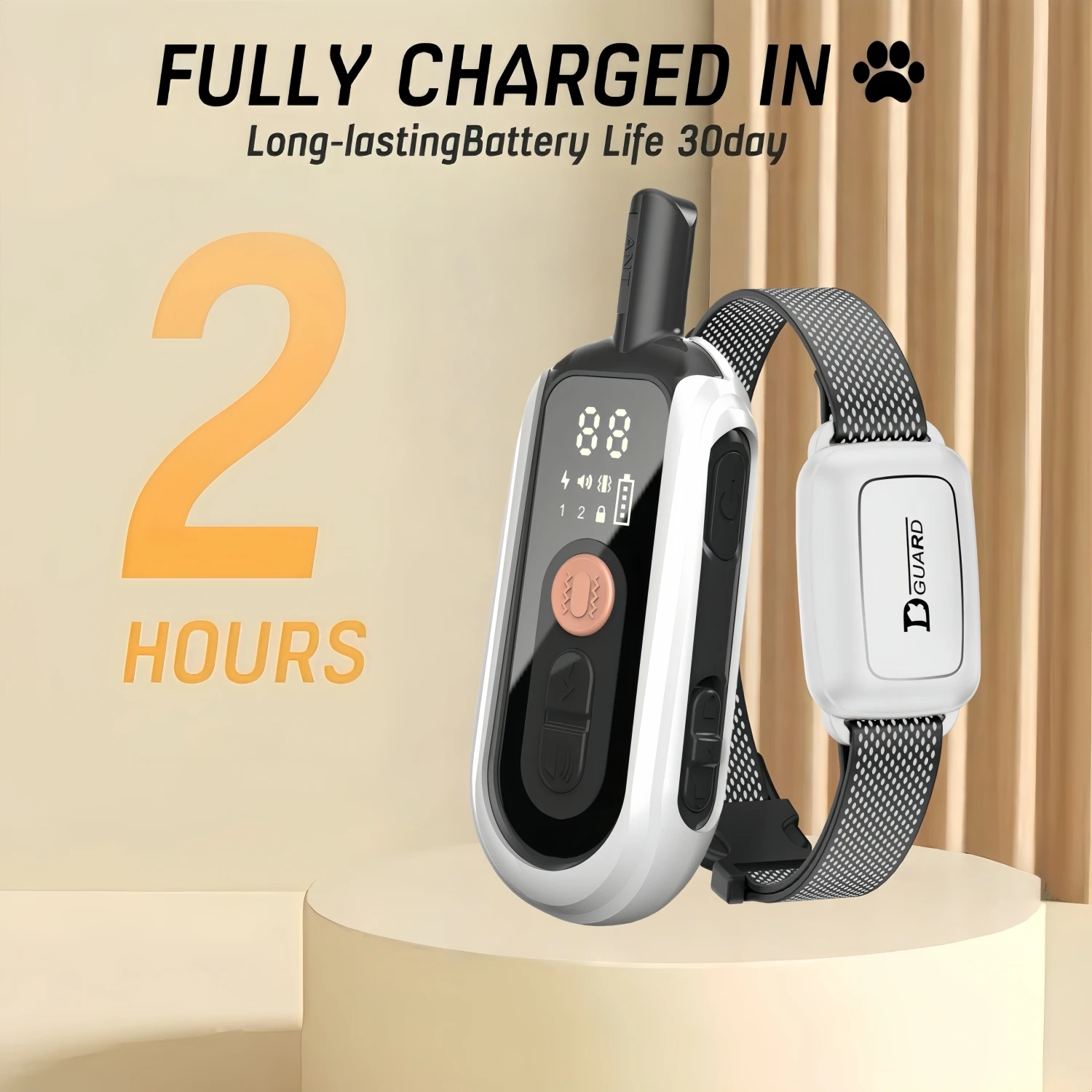 Features 1: Can be trained/prevent biting, barking, and making noise/prevent getting lost