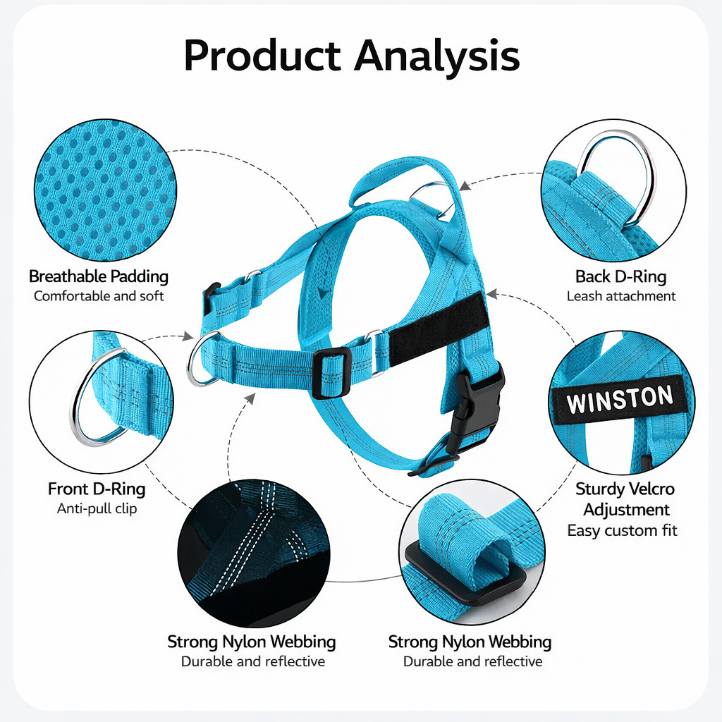 Reflective Safety: Made from durable Nylon with Reflective elements to ensure high visibility, keeping your pet safe during low-light walks and training.